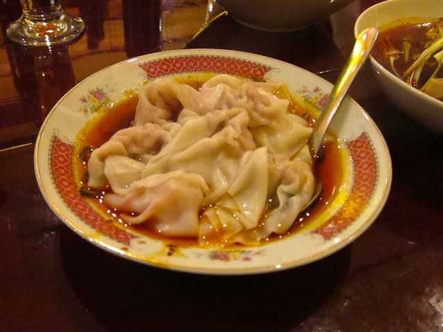 Very basic non-Cantonese style wonton (with a thicker skin) dressed in a slightly sweetened soy sauce and light chili oil dressing. A good Beginner 101 dish for any non-adventurous eater.