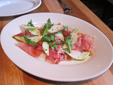 I have never seen anything sliced so thin. I have also never tasted so much flavor from anything this thin. The meat was nutty and earthy. The oil drizzled on top along with the salt from the meat made it decadent and addictive. The pear was a nice touch to break up the saltiness in the dish.